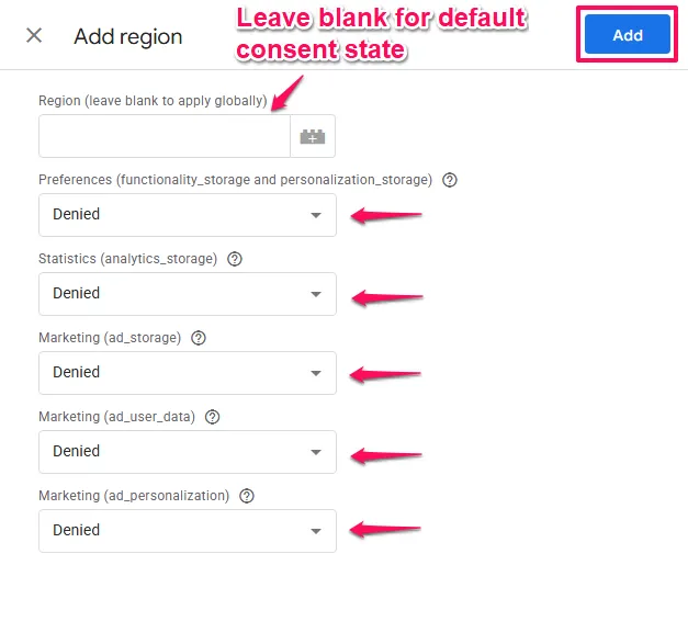 ad_personalizationis denied, the user cannot be added to remarketing audiences or personalized advertising campaigns