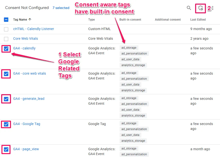 Before proceeding, audit your existing GTM container. You must classify every tag into one of two categories based on whether they have built-in consent awareness.
