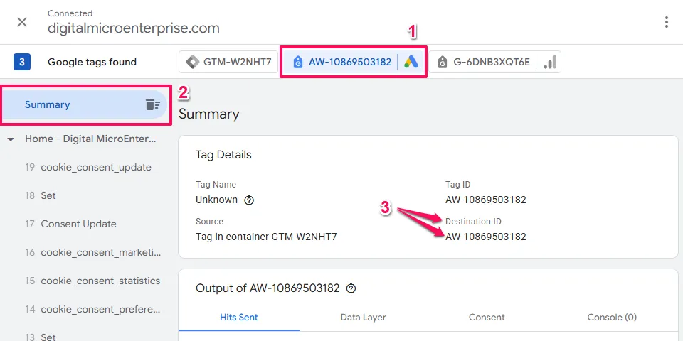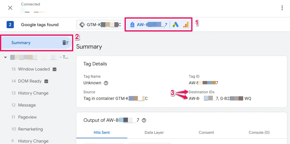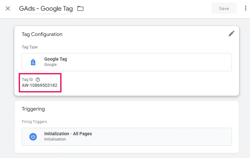However, when a Google Tag has multiple destinations, the Conversion Tracking ID might only appear under Destination IDs