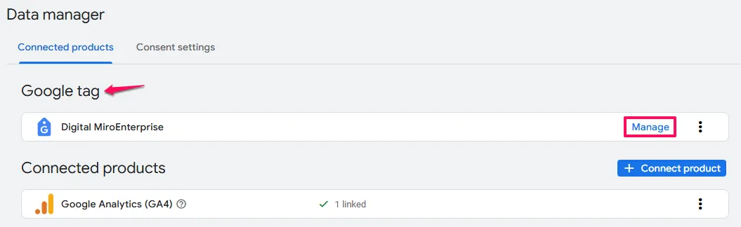 - If you see a tag with the Google Ads icon plus other icons (like Google Analytics 4), this tag serves multiple destinations including Google Ads