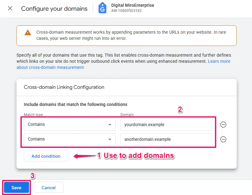 - For Google Tag with Google Ads as a destination and it fires on all pages → Cross Domain Tracking With Google Tag (Modern Setup).