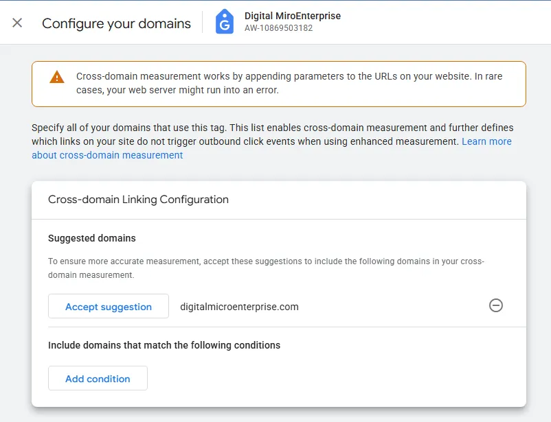 - For Google Ads cross-domain, ensure you modified your Google Ads tag