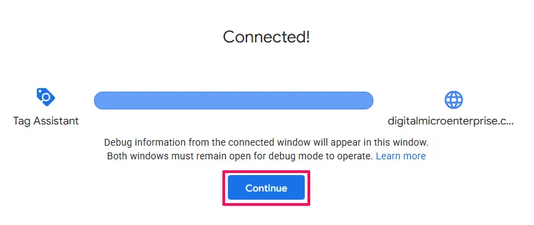 A new browser tab will open showing your website. In the bottom right corner, you should see a small Tag Assistant box appear briefly.