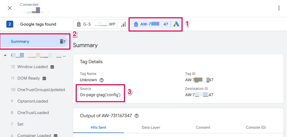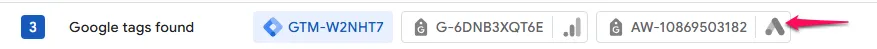 Look at the tags listed in the Google tags found section. Each tag will show: