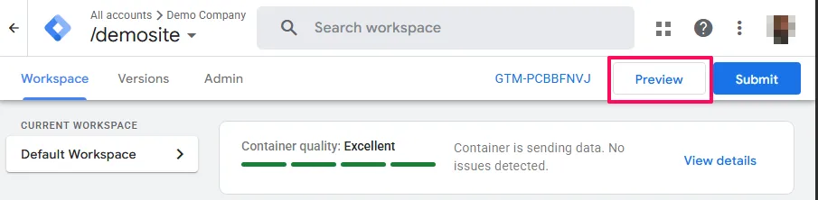 - Open your GTM workspace