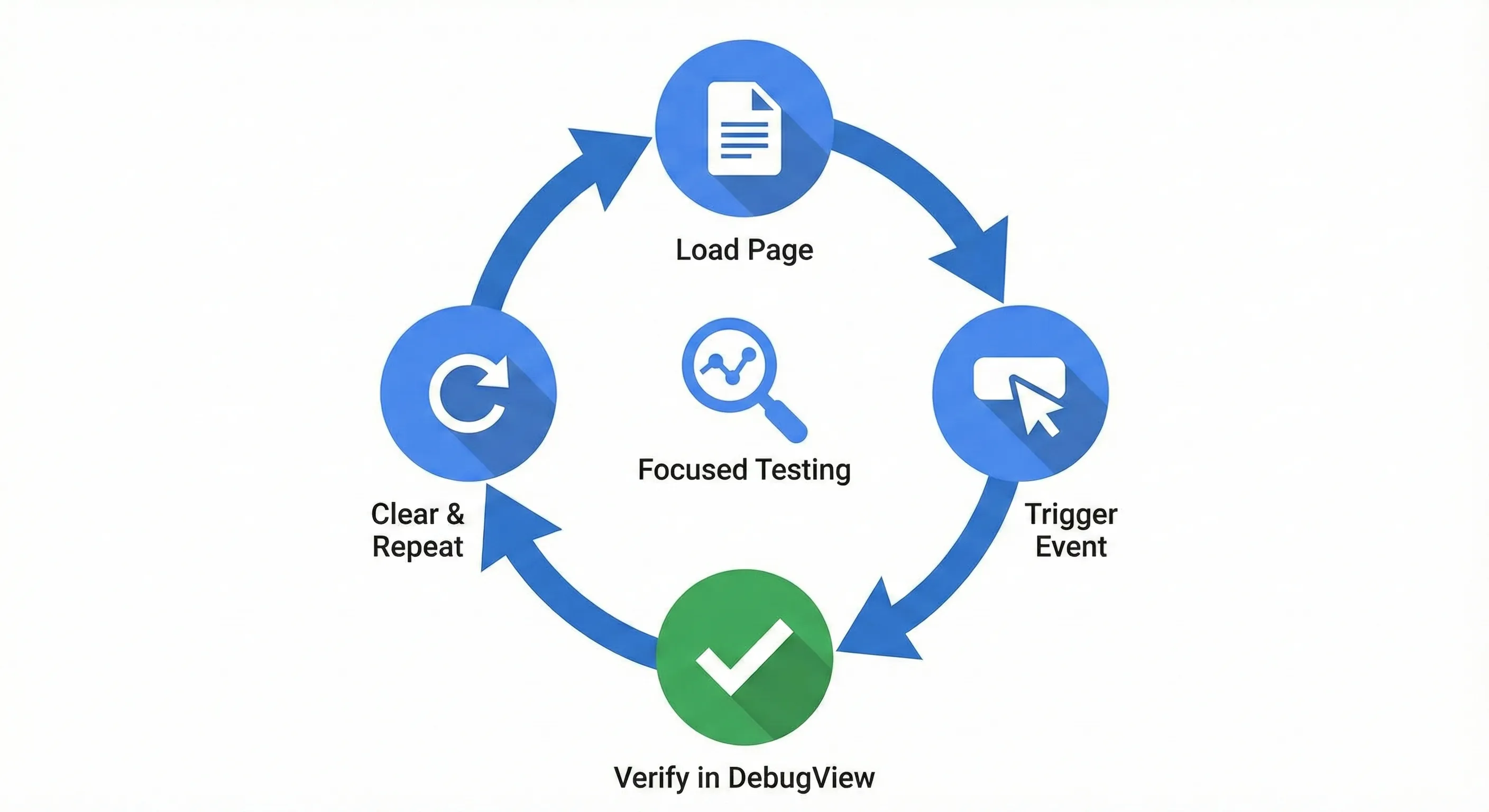 After Every Website Change: Developers redesigning your site might accidentally break tracking by changing button IDs, form structures, or page URLs. After each deployment, spend 5 minutes in DebugView clicking through critical conversion paths—form submissions, checkout flows, key page views—to verify tracking survived the changes.