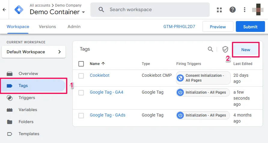 Log into your GTM container and navigate to Triggers in the left sidebar. Click New to create a new trigger.
