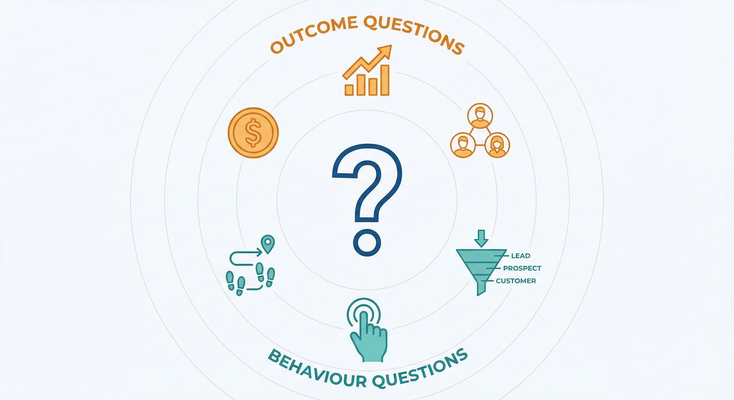 Your desired outcomes and the behaviours that drive them determine which questions matter for your business. These aren’t theoretical questions. They’re the specific inquiries that, when answered with data, allow you to make confident decisions about where to invest resources.
