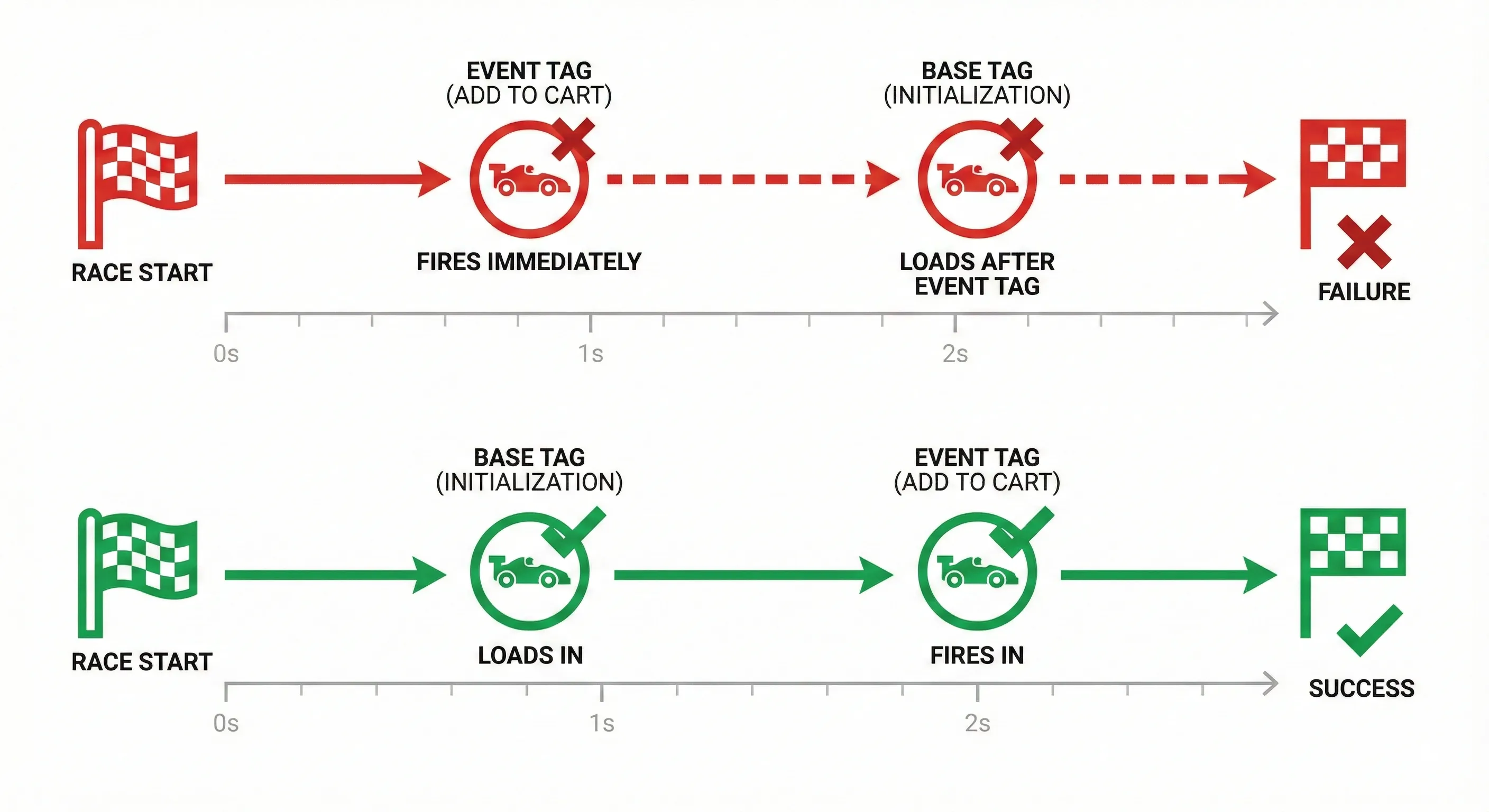 This prevents a technical problem called a “race condition.” Imagine you have a tag that tracks when someone clicks your “Request Demo” button. If that click happens before the Google Tag has finished loading, the event gets sent into the void and you lose the data. By using Initialization, you guarantee the foundation is ready before any other tracking attempts to happen.