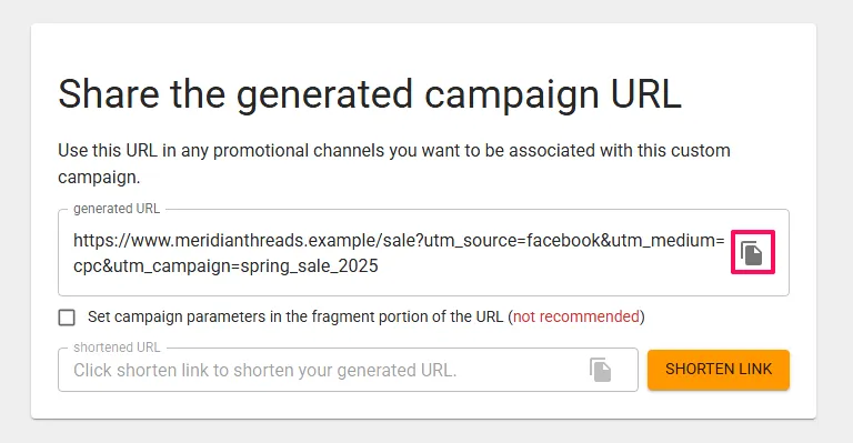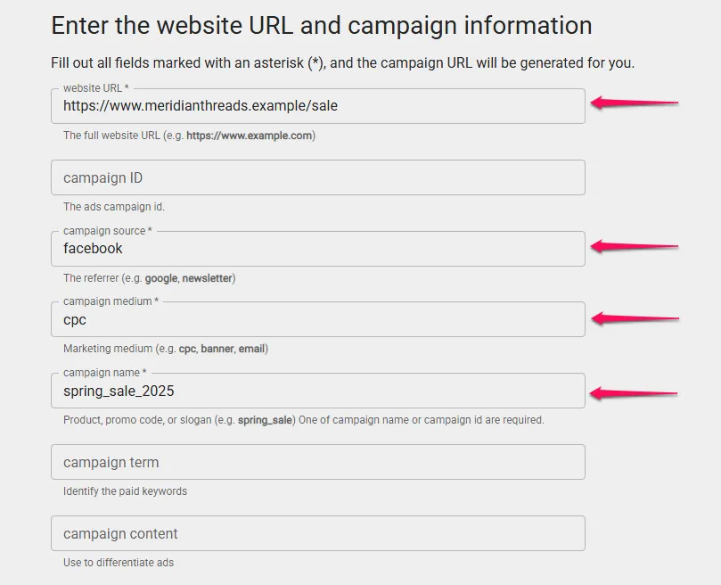 As you fill in the fields, the tool automatically generates the final tagged URL at the bottom of the page. It will look something like this: